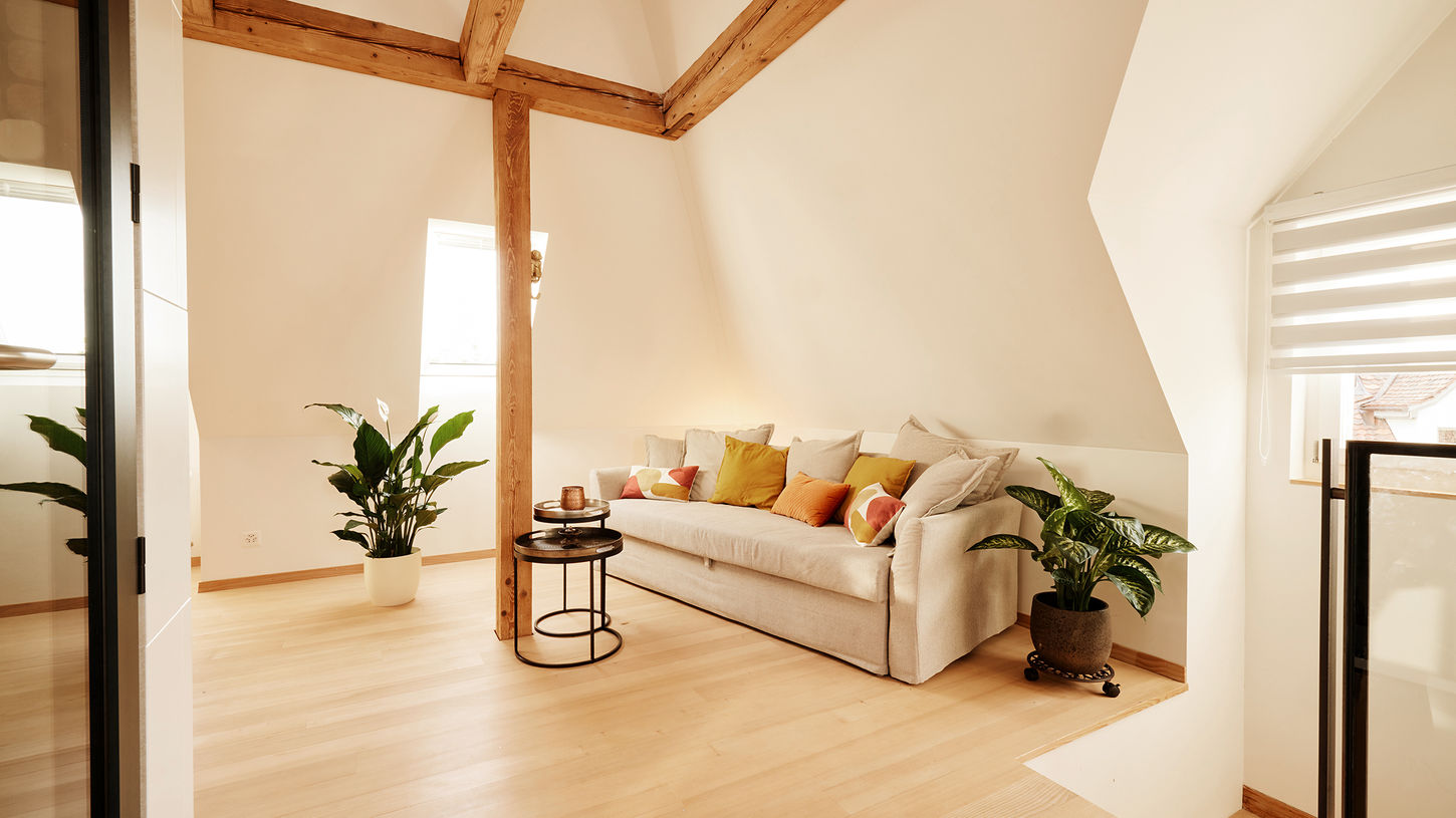 Moderner Sitzungstisch, bequeme Bestuhlung, TV, High-Speed-Internet, Moderationskoffer, Sofa, zusätzliche Arbeitsplätze, Bad und Küche stehen dir zur Verfügung.